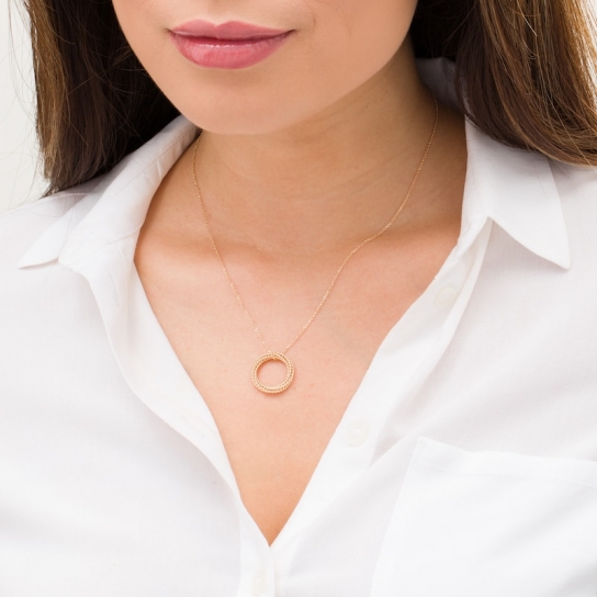 An entrancing look you won’t be able to resist, this pendant exudes modern sophistication. Created in warm 10K gold, this style features a crossover design of layered ribbons. The sumptuous rope texture is an elegant representation of the Lasso of Truth. Suspending along an adjustable 19.0-inch cable chain that secures with a lobster claw clasp, and polished to a bright shine, this style elevates your day or evening attire.This exclusive fine jewelry collection inspires you to wear your strength, confidence and power.