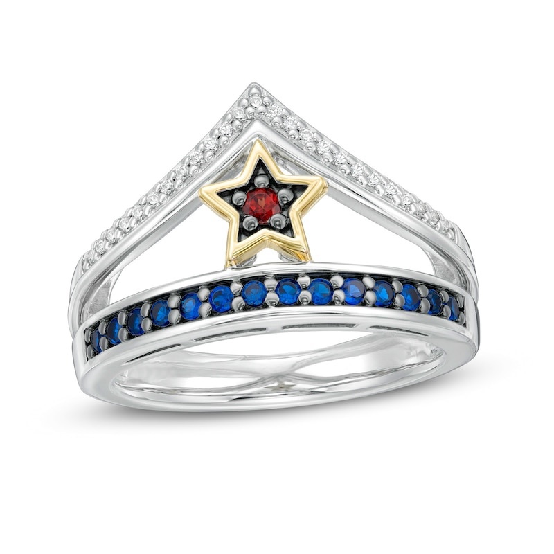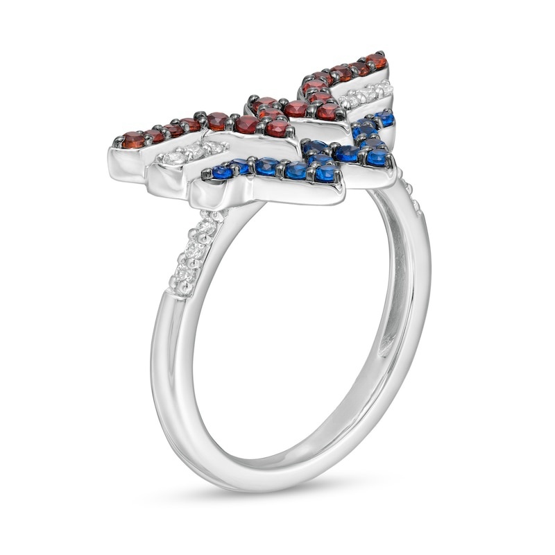 Garnet, Blue Sapphire and 1/15 CT. T.W. Diamond Symbol Ring in Sterling Silver