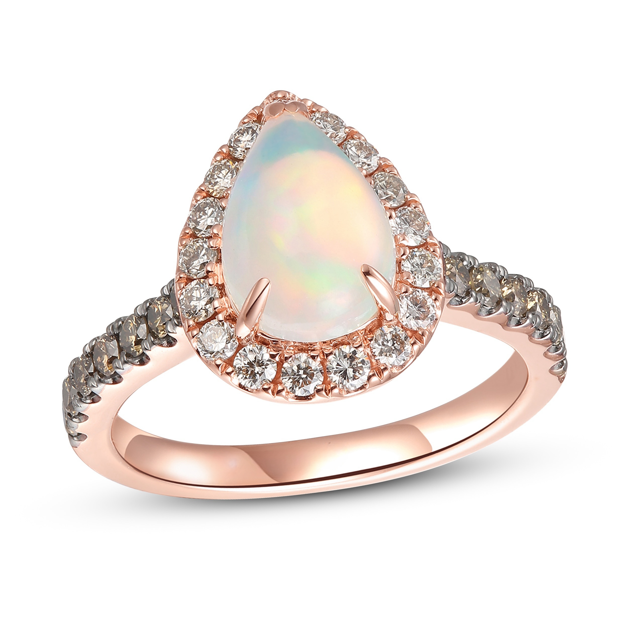 Opal Ring 3/4 ct tw Diamonds Pear-shaped 14K Strawberry Gold
