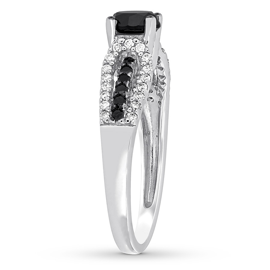 Black & White Diamond Engagement Ring 7/8 ct tw 14K White Gold