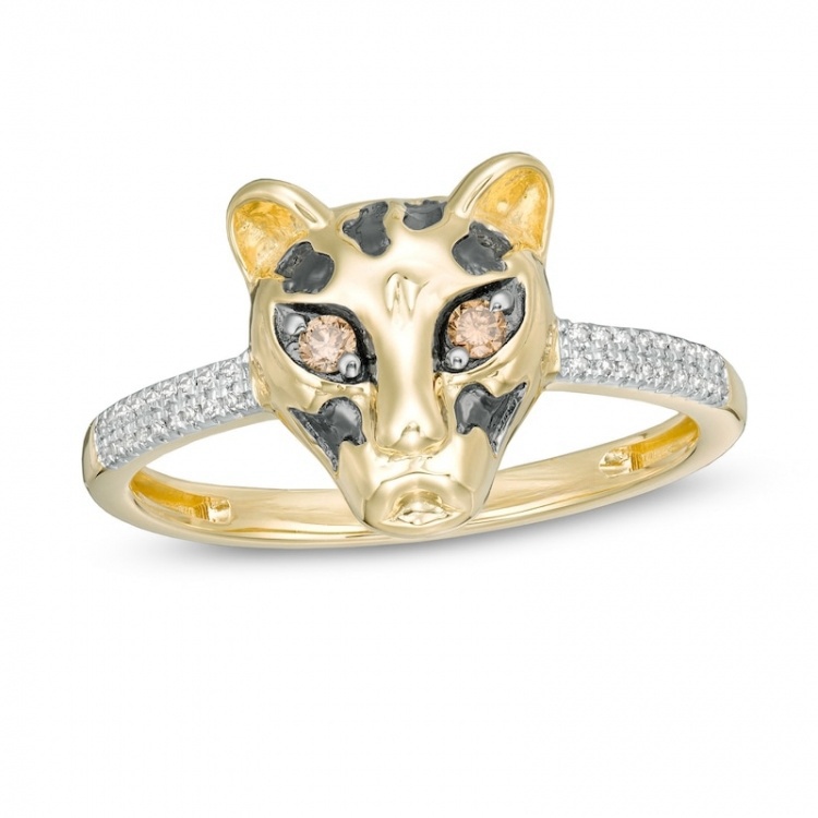 1/10 CT. T.W. Champagne and White Diamond Cheetah Ring in 10K Gold and Black Rhodium:1/10 CT. T.W. Champagne and White Diamond Cheetah Ring in 10K Gold and Black Rhodium