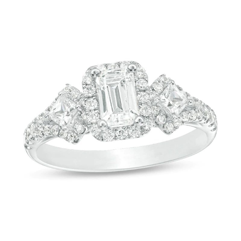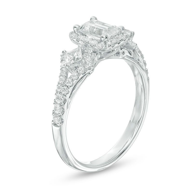 1 CT. T.W. Certified Emerald-Cut Diamond Frame Ornate Engagement Ring in 14K White Gold (I/I1)