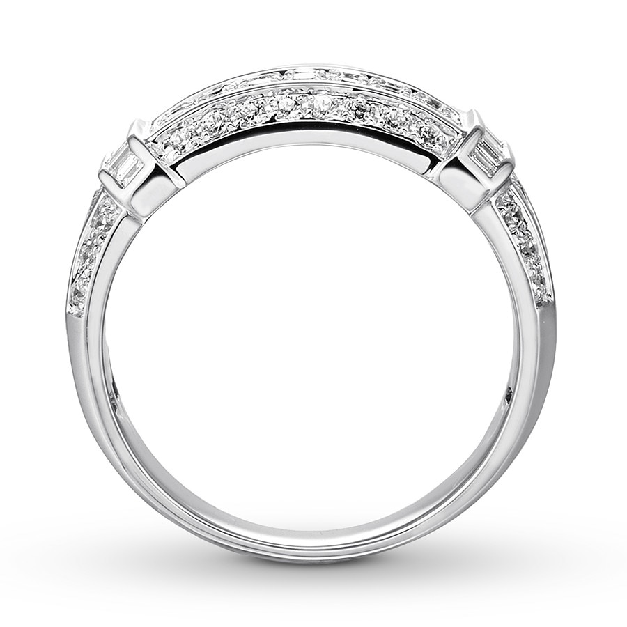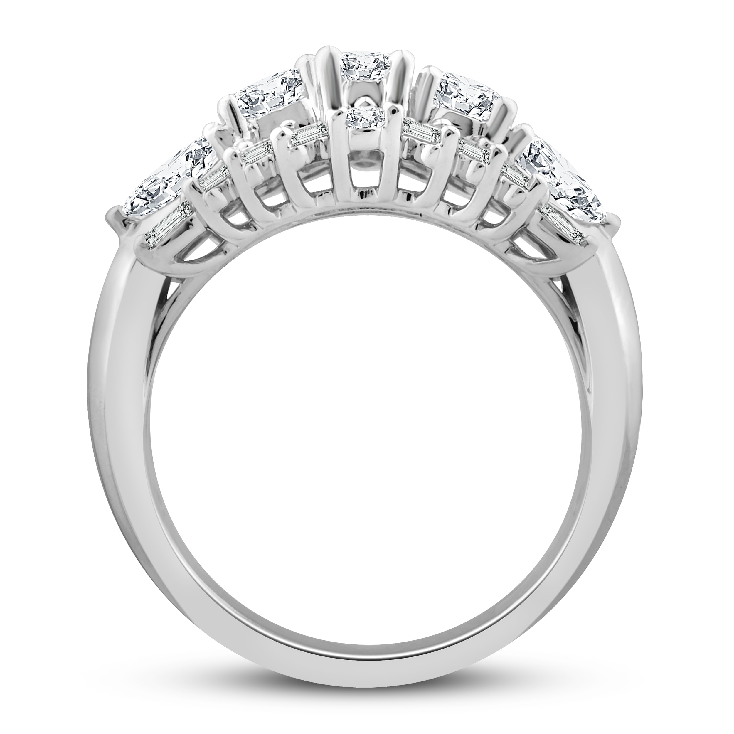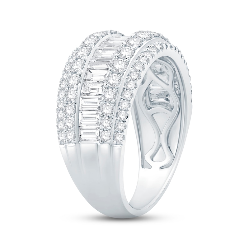 Diamond Anniversary Ring 2 ct tw Round & Baguette-cut 14K White Gold