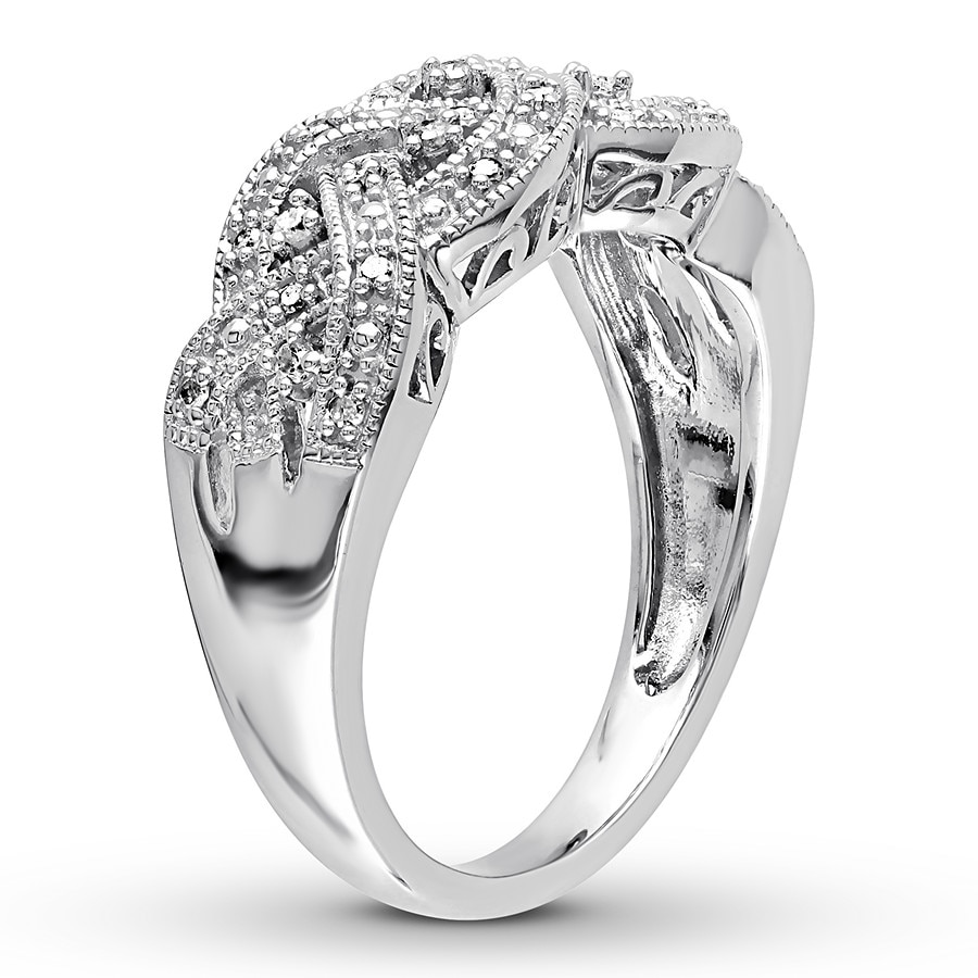 Diamond Woven Ring 1/8 ct tw Round-cut Sterling Silver