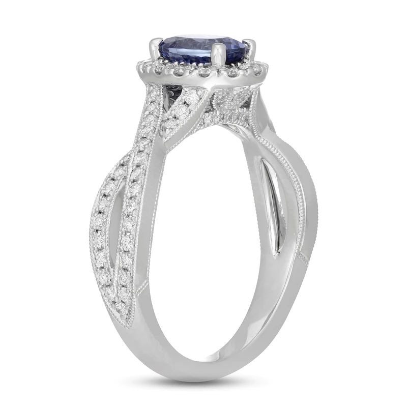 Tanzanite & Diamond Engagement Ring 5/8 ct tw Round-cut 14K White Gold