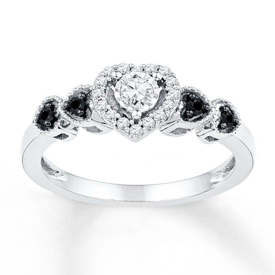Black/White Diamonds 1/5 ct tw Promise Ring Sterling Silver