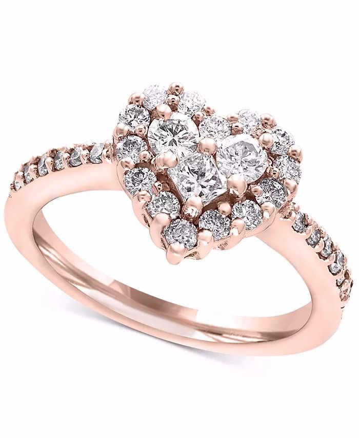 Diamond Heart Ring 5/8 ct tw 14K Strawberry Gold