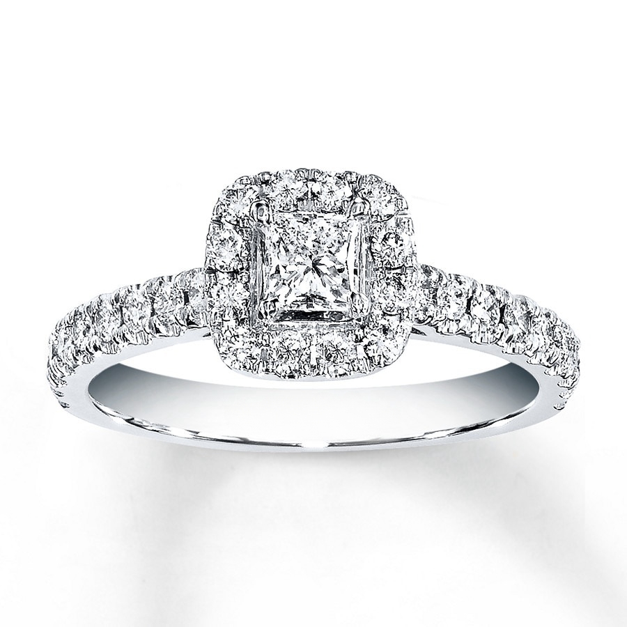 Engagement Ring 7/8 ct tw Diamonds 14K White Gold