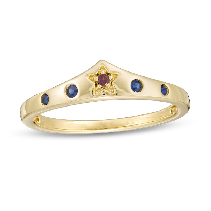 Garnet and Blue Sapphire Tiara Ring in 10K Gold